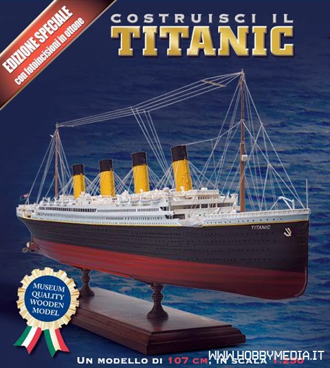 La Hachette ha lanciato in edicola la nuova serie di fascicoli Costruisci il Titanic. Sono previste 130 uscite. Ad ogni fascicolo con periodicità settimanale sono allegati i componenti per la costruzione del modello del Titanic (completamente realizzato in legno). Durante il corso dell'opera verranno messi in vendita 3 raccoglitori per conservare i fascicoli.  La prima uscita è in edicola al prezzo di 0.99 euro mentre la seconda costerà 3.99 euro. Il prezzo delle successive uscite è di 6.99 euro (salvo modifiche che l'Editore si riserva il diritto di apportare nel corso dell'opera).
